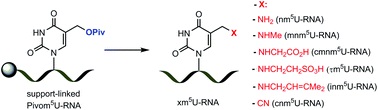 Synthesis of Nucleobase-Modified RNA Oligonucleotides by Post-Synthetic Approach.